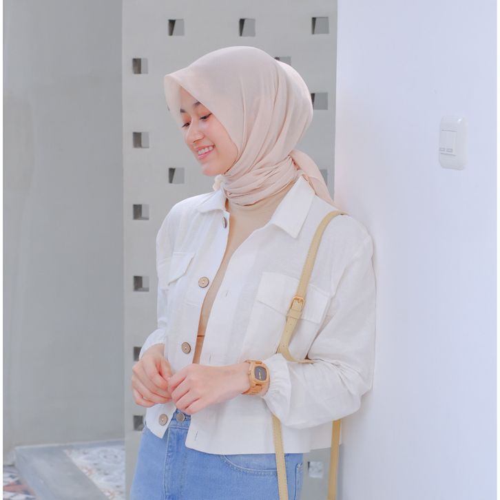 Kemeja Casual Lyora Outer Kemeja Linen Lengan Panjang Basic Korean Style Crop Jaket Wanita Bahan Linen Terbaru