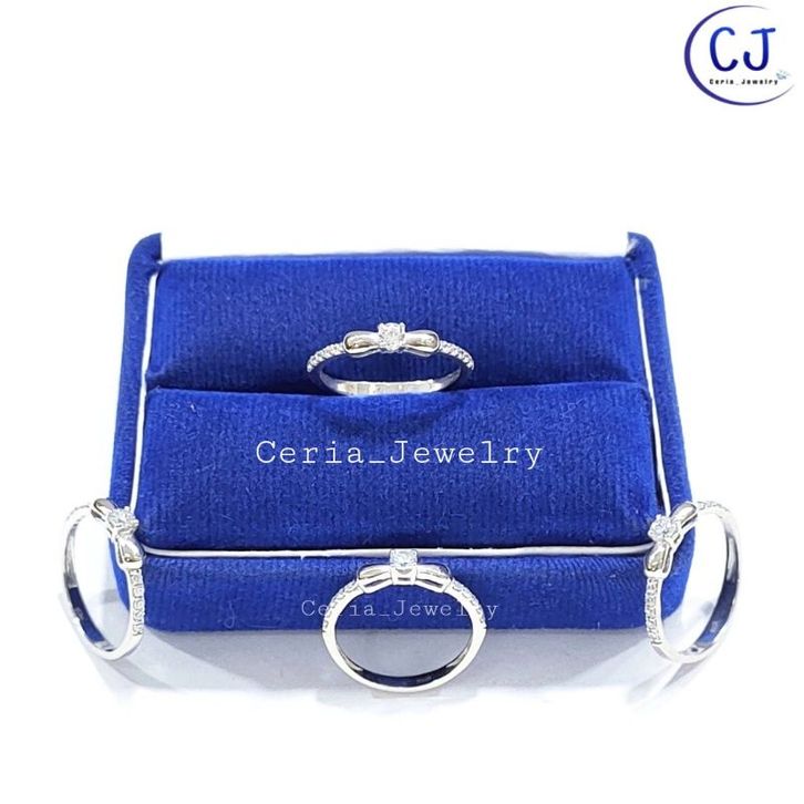 Cincin Perak Asli Silver 925 Lapis Emas Putih Model Pita - Perhiasan Perak Wanita