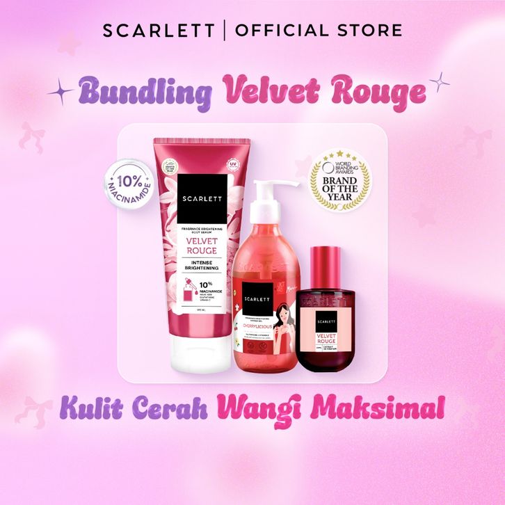 BUNDLING SCARLETT FRAGRANCE BRIGHTENING BODY SERUM PARFUM VELVET ROUGE PURPLE KISS MELEMBAPKAN MENCERAHKAN MERATAKAN WAR