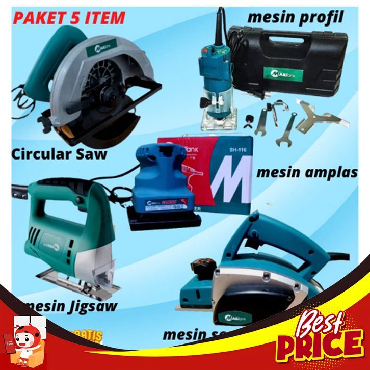 BARU+ PAKET TUKANG KAYU MURAH !!!! MESIN PROFIL KAYU / MESIN SERUT / CIRCULAR SAW 7INCH / MESIN AMPLAS + MESIN JIGSAW