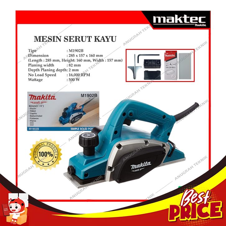 BARU+ MAKTEC MT192 / MAKITA M1902B MESIN PLANER SERUT KAYU PASAH KETAM SUGU PLANNER M 1902 B MT 192 BERKUALITAS
