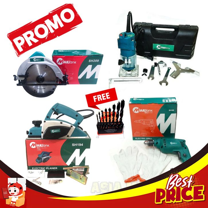 BARU+ PAKET TUKANG KAYU!! |4 ITEM|| CIRCULAR ,BOR 10MM MAILTANK,PLANER RETTO,TRIMMER MAILTANK