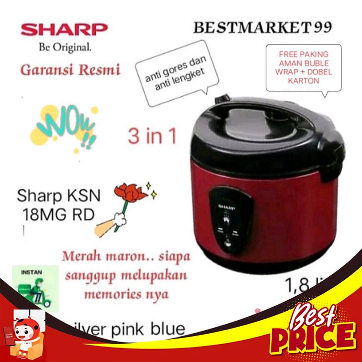 BARU+ PROMO 11.11 MAGIC COM SHARP KSN 18MG RICE COOKER 1,8 LTR FREE PAKING AMAN BUBLE WRAP + KARTON TEBAL