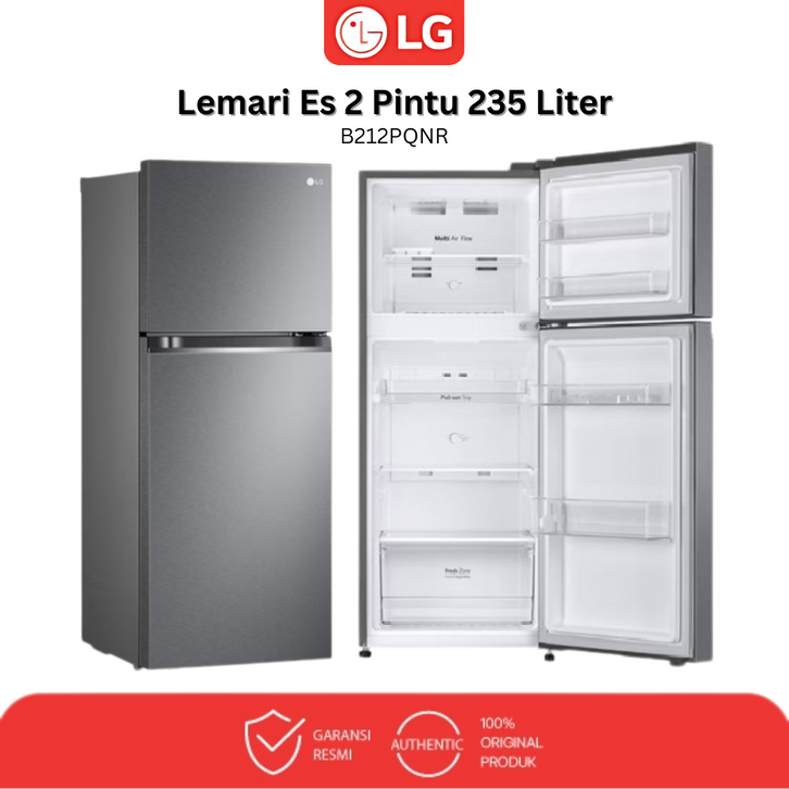KULKAS LG 2 PINTU 235 217 LITER FREEZE GRAPHITE STEEL GN-B212PQNR LEMARI ES FREEZER JUMBO TANPA BUNGA ESTERBARU