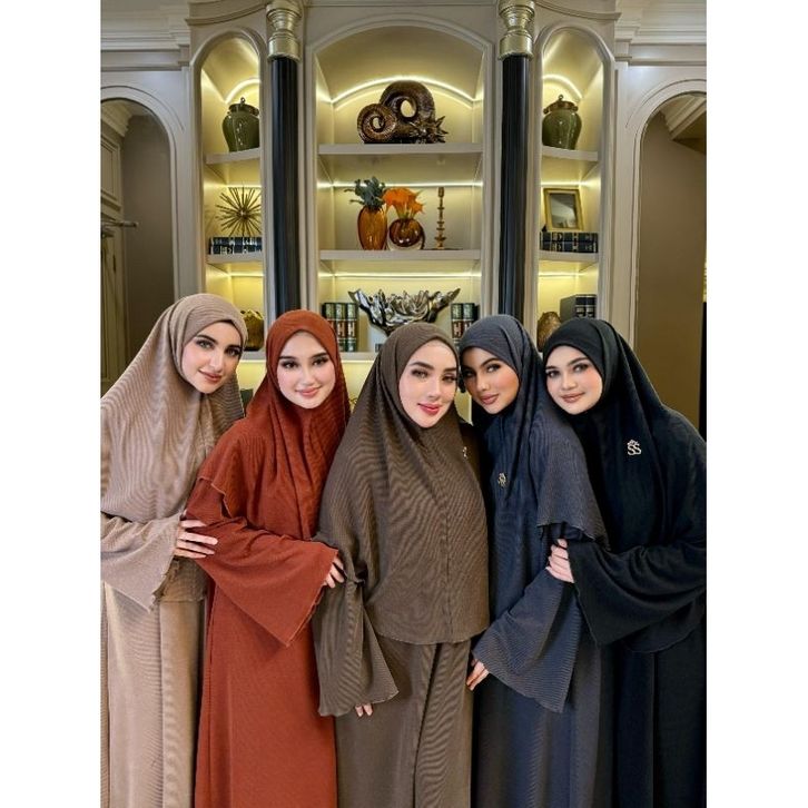 SET ABAYA BERGO KNIT SHELLASAUKIA ALLSIZE FIT 130 SET ABAYA SHELLASAUKIA TERBARU GRATIS ONGKIR