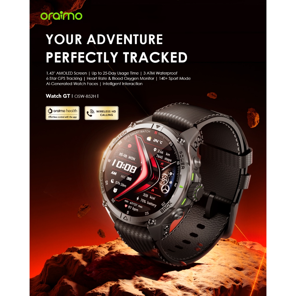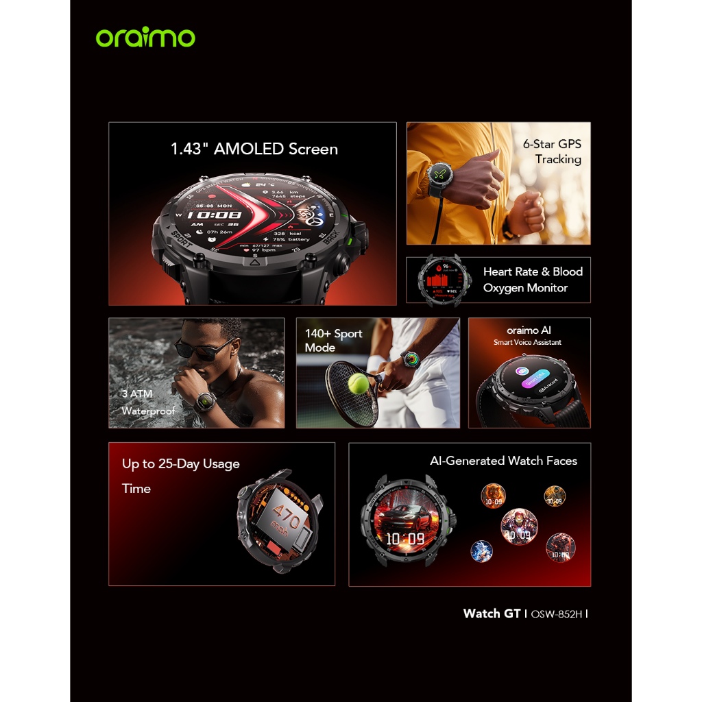 SMARTWATCH ORAIMO GT OSW 852H JAM TANGAN PINTAR 6 STAR GPS TRACKING 1.43 AMOLED SCREEN AI GENERATED WATCH FACE LONG WATE