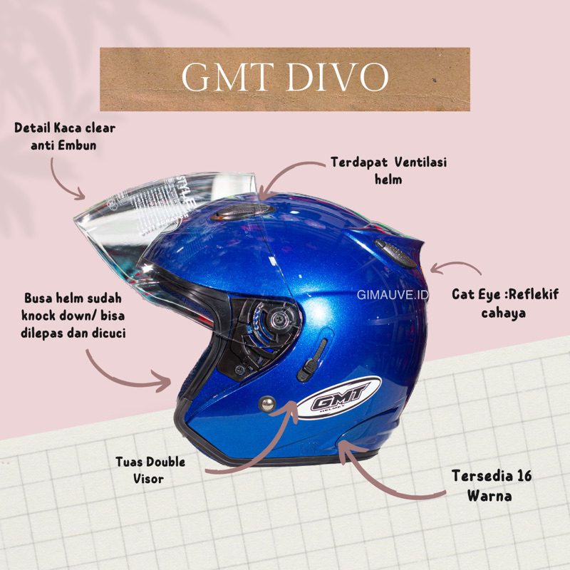 HELM HALF FACE GMT ORIGINAL DOUBLE VISOR MOTOR SNI MURAH HELM PRIA WANITA DEWASA