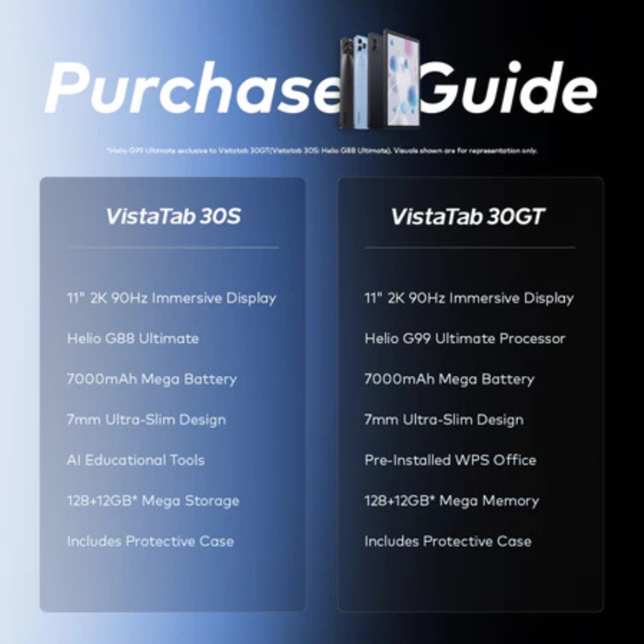 VistaTab 30GT (6+128GB), VistaTab 30S (4+128GB), Tab 30GT (6+128GB)