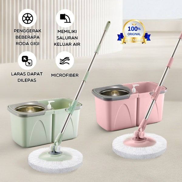 Alat Pel Lantai 2 in 1 Ember Terpisah Dapat 2 Kain Pel Kain Fiber Pembersih Lantai / Alat Pel / Murah