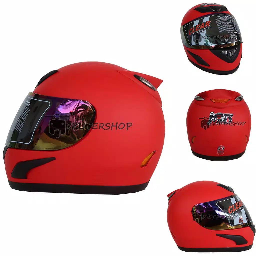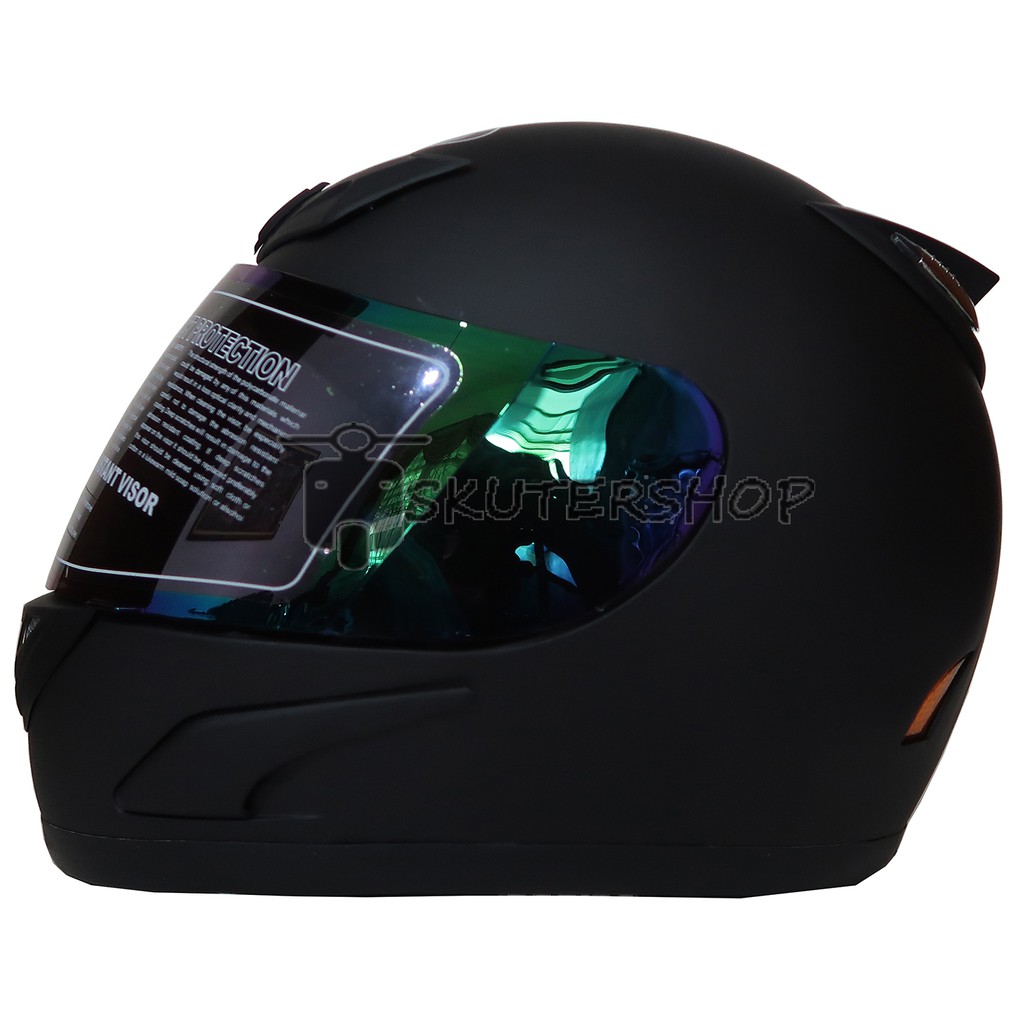 HELM FULL FACE BRAND JPN JAP STYLE RACING SPORT MOTOGP TANDUK HITAM DOFF MATT BLACK VISOR RAINBOW