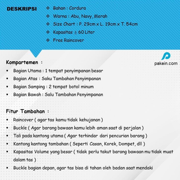 Pakein Tas Carrier 60 Liter Tas Gunung Keril 60L Backpack Hiking 32