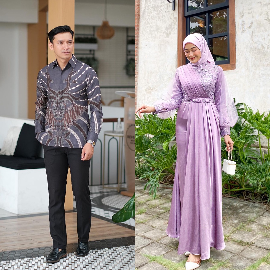 COUPLE GAMIS MELODY BRUKAT TULLE MUTIARA COUPLE DRESS KONDANGAN LAMARAN LEBARAN ADEEVA AMARA MAXI DRESS