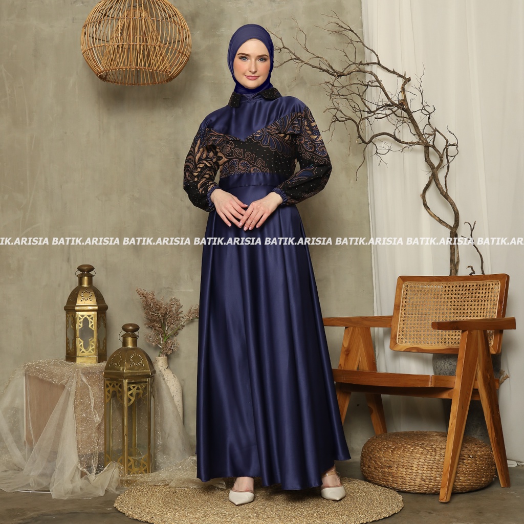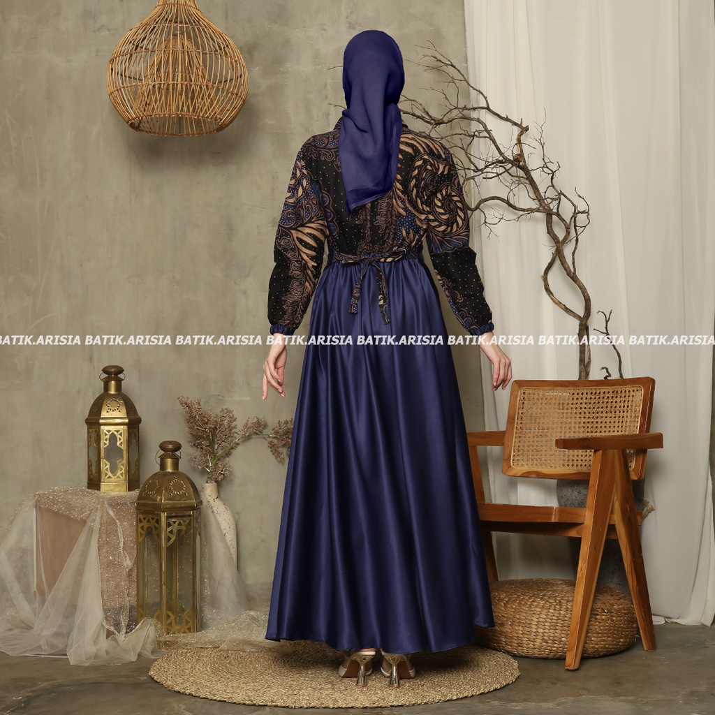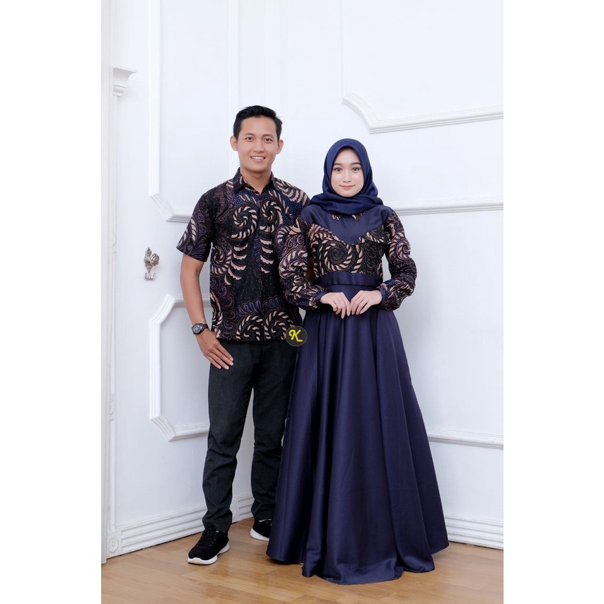 BATIK COUPLE KELUARGA MODERN TERBARU SET COUPLE BATIK KELUARGA GAMIS JUMBO VELVET NAVY [ FREE HIJAB ]