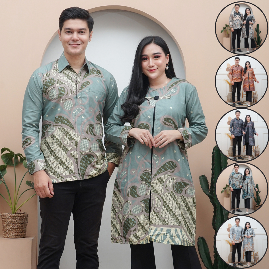 BATIK TUNIK COUPLE MODERN SET PAKAIAN COUPLE KEMEJA BATIK PRIA LENGAN PANJANG BAJU BATIK COUPLE