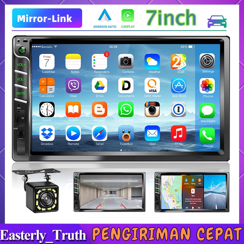 HEAD UNIT DOUBLE DIN 7 INCH BLUETOOTH AUDIO TV MOBIL CAR MP3 MP5 PLAYER MIRRORLINK TOUCH SCREEN RADIO AUDIO MOBIL
