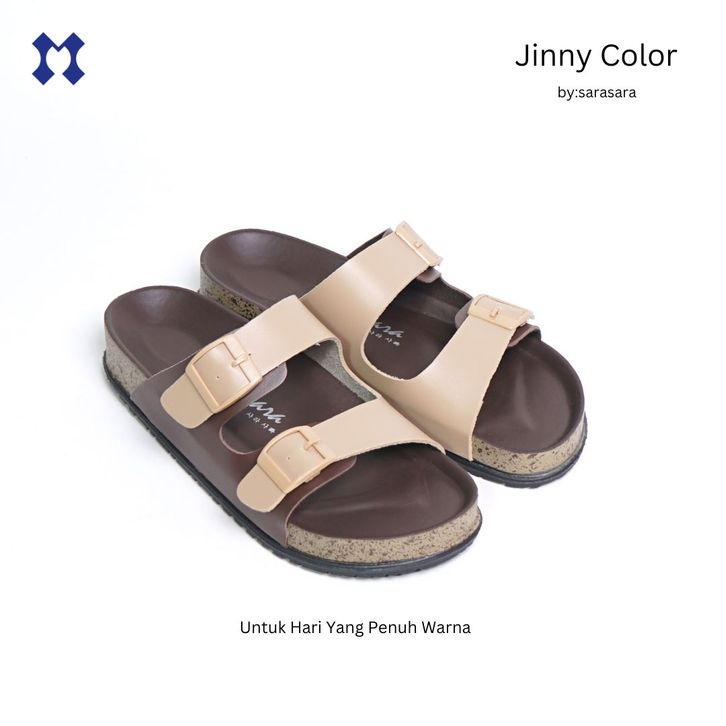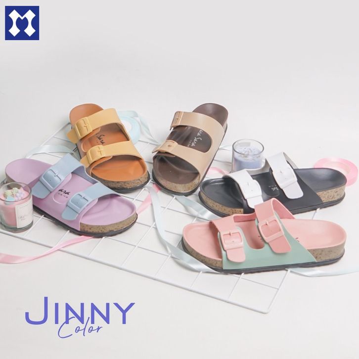 Sara Jinny Color Sandal Wanita Casual Model Slop Puyuh Kekinian Birken Ban Dua