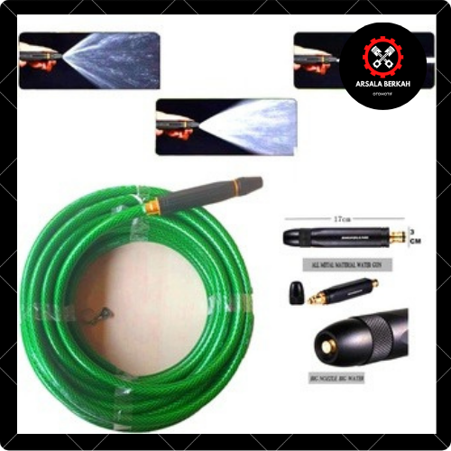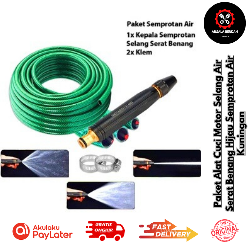 Paket Alat Cuci Motor Selang Air Serat Benang Hijau Semprotan Air Kuningan