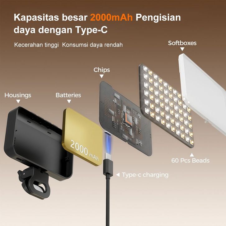 Mini Portable Led Selfie Light 3 Warna + Tahan 2 Jam Untuk Live Streaming Fotografi Kecantikan Dan Penggunaan