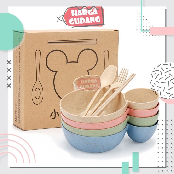 Mangkok Set Peralatan Makan Anak 4 in1Bahan Jerami Gandum Children Tableware Piring VS-25