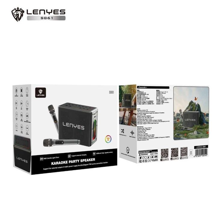 LENYES KARAOKE SPEAKER BLUETOOTH RGB V5.0 150WATT WITH DUAL MICROPHONE HIFI STEREO S861