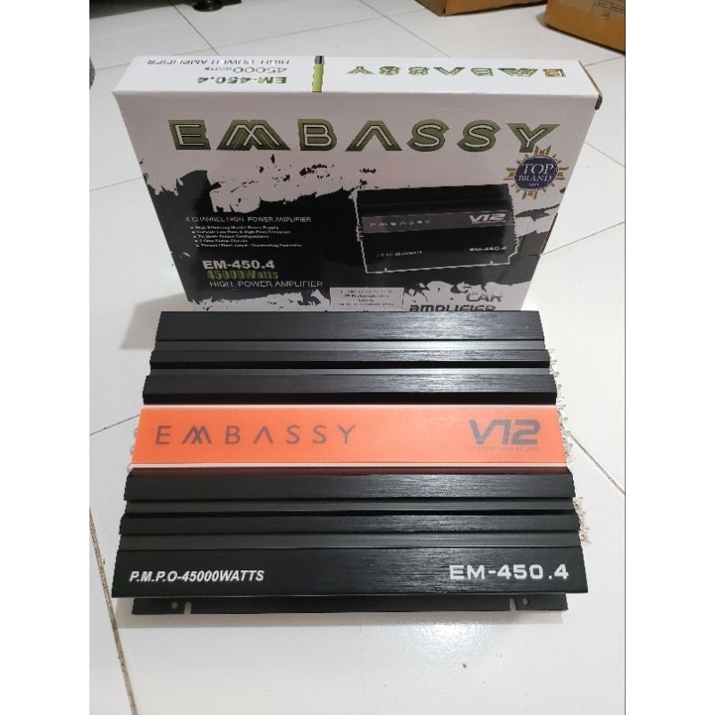 Power Amplifier Mobil Power Embassy EM-450.4 V12 4 Channel Power Mobil 4 Channel Power Amplifier 4 Channel Audio Mobil