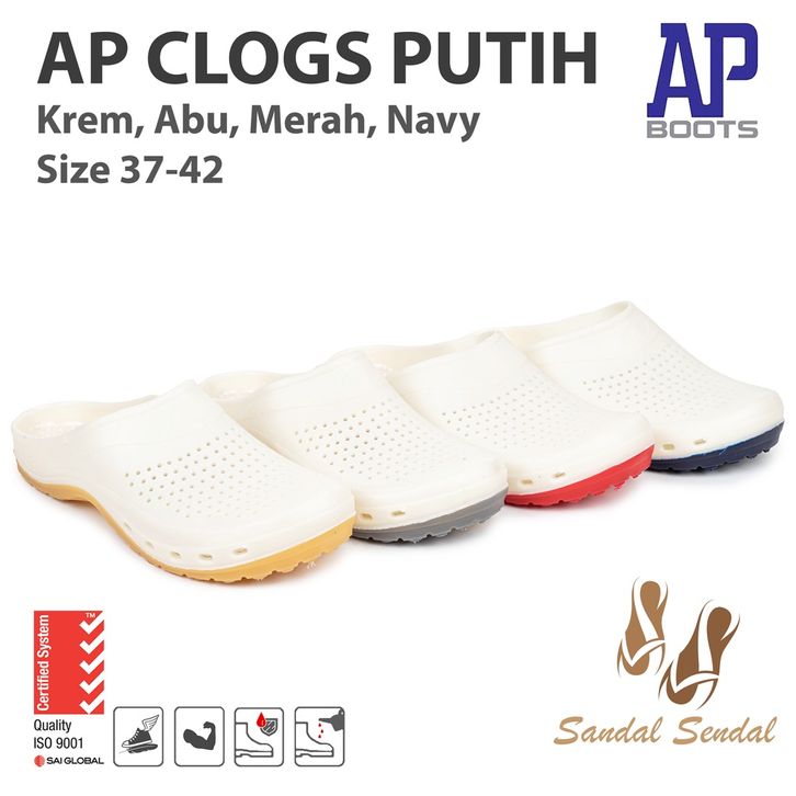 Sandal Slop AP CLOGS PUTIH - Sandal AP Boots Karet Anti Slip