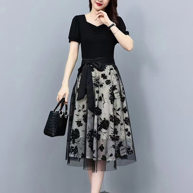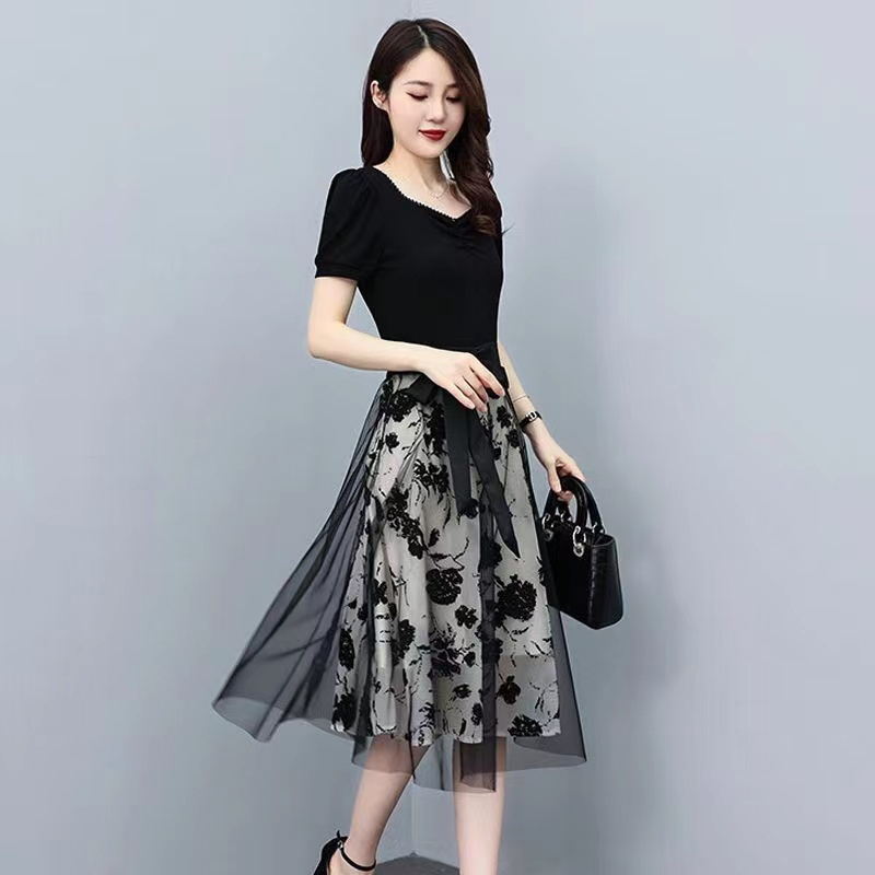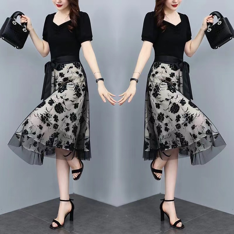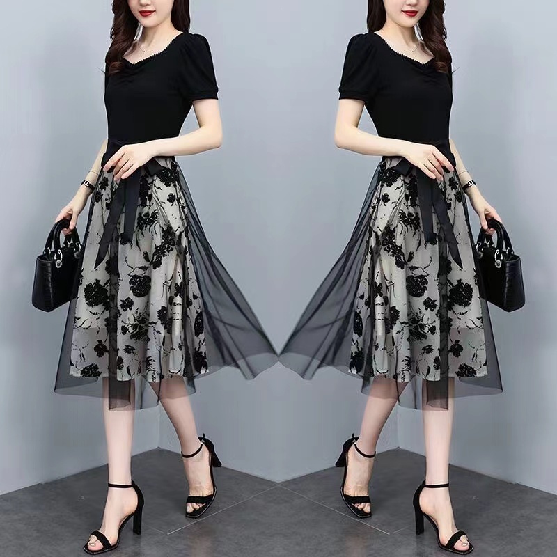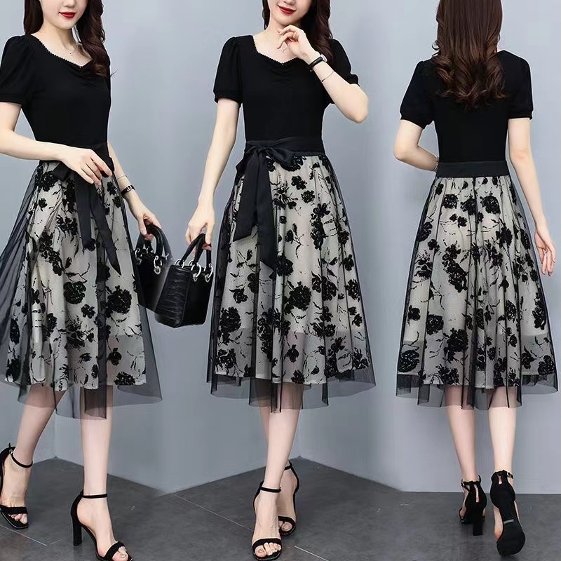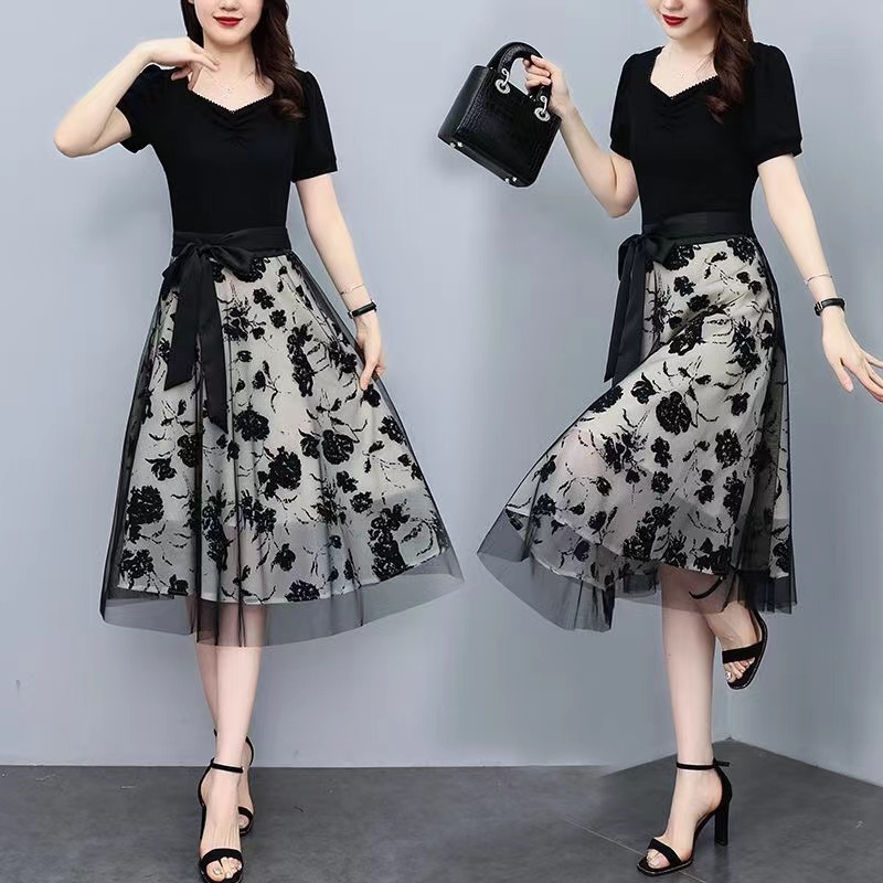 GAUN BESAR BENANG JARING KOREA BARU DRESS BUNGA KOREA DRESS HITAM KOREA