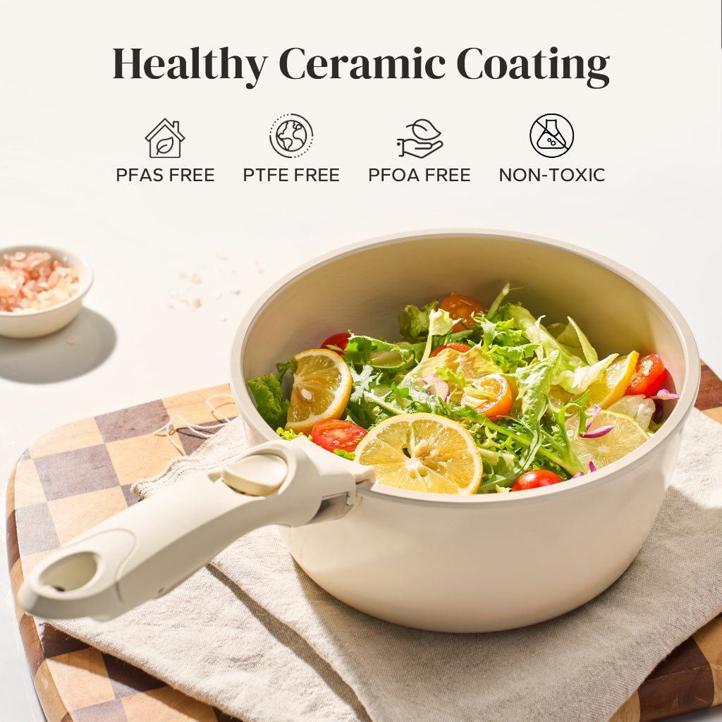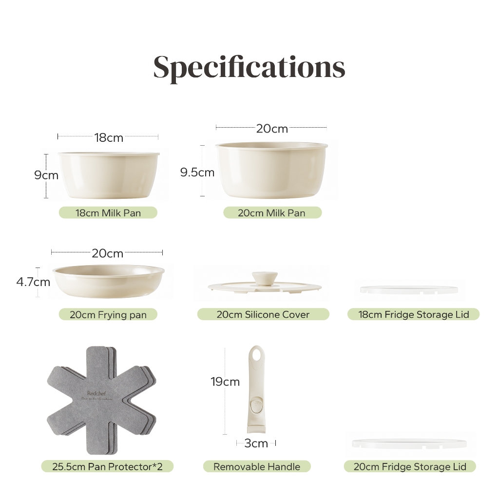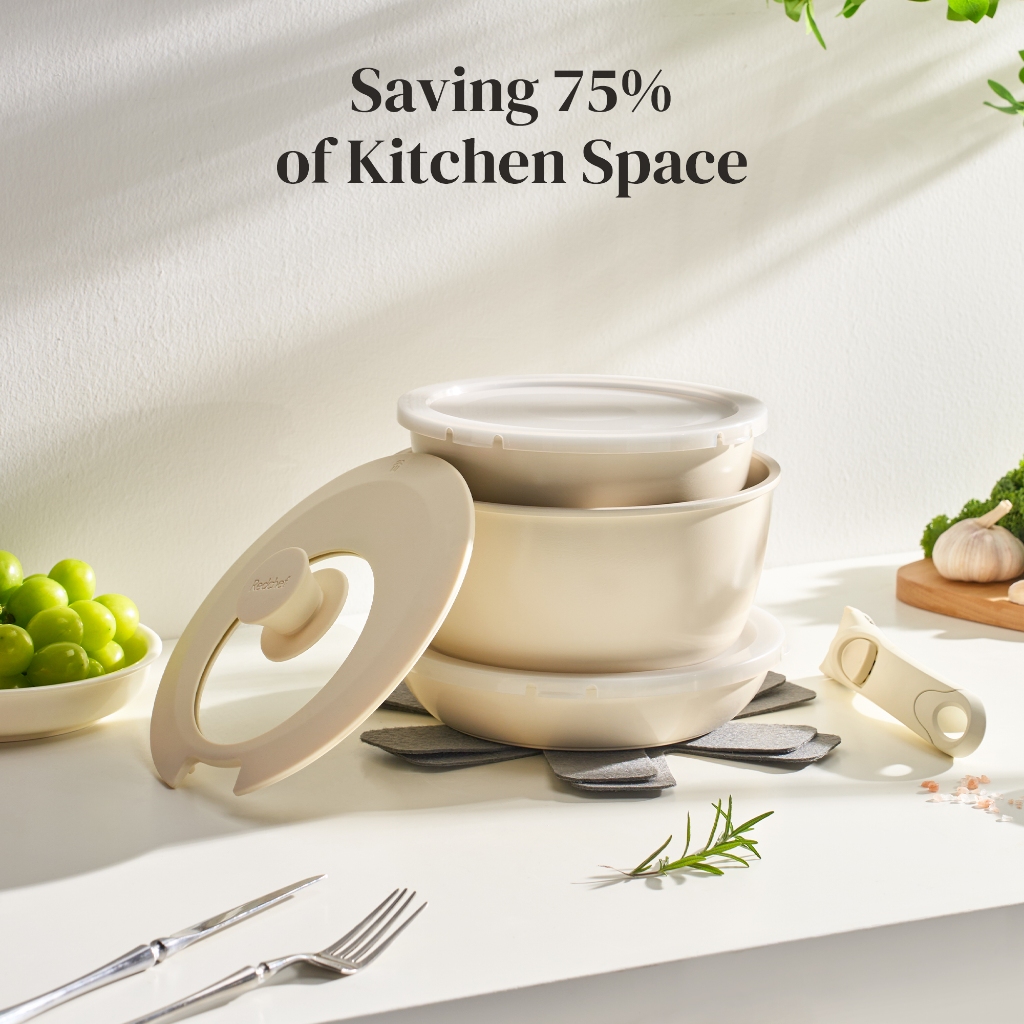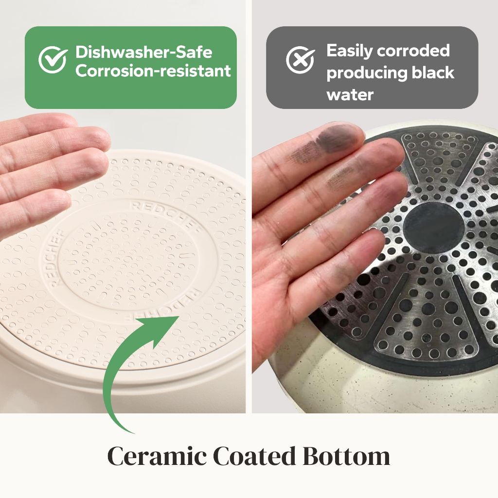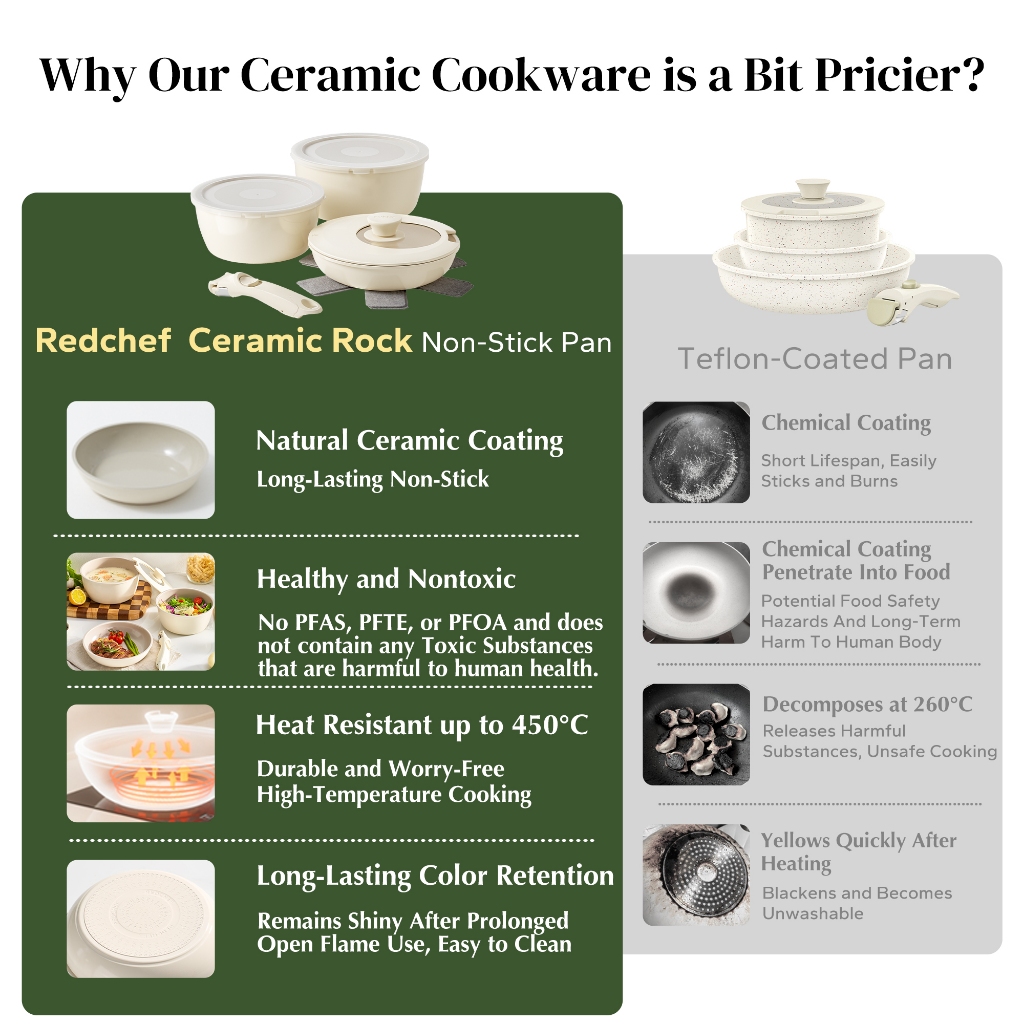 REDCHEF NONSTICK CERAMIC ROCK COOKWARE PANCI WAJAN SET HANDLE REMOVABLE 9PCS NO PFAS& PTFE& PFOA SUITABLE FOR ALL STOVES