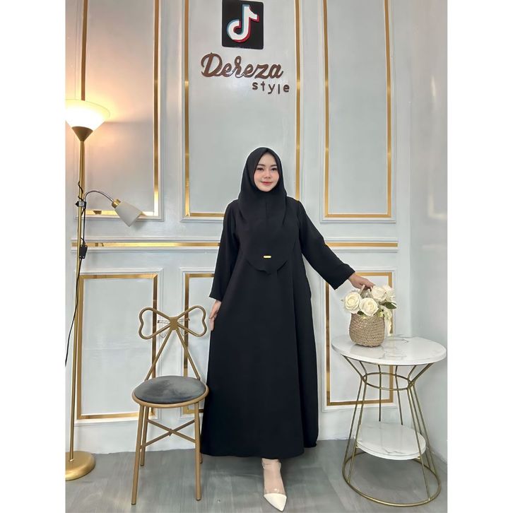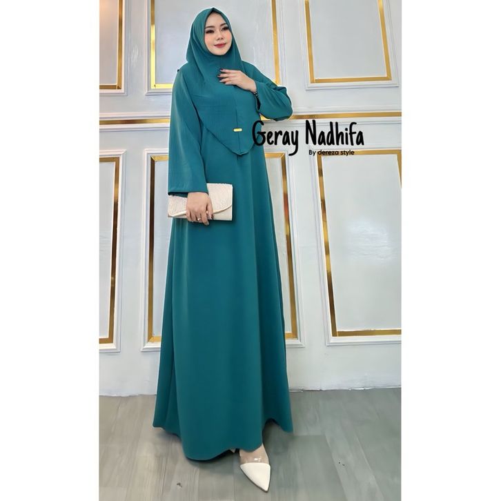 Nur abaya set hijab bergo cringkle airflow by dereza style gamis set hijab Polos Muslim Wanita Dress Dewasa