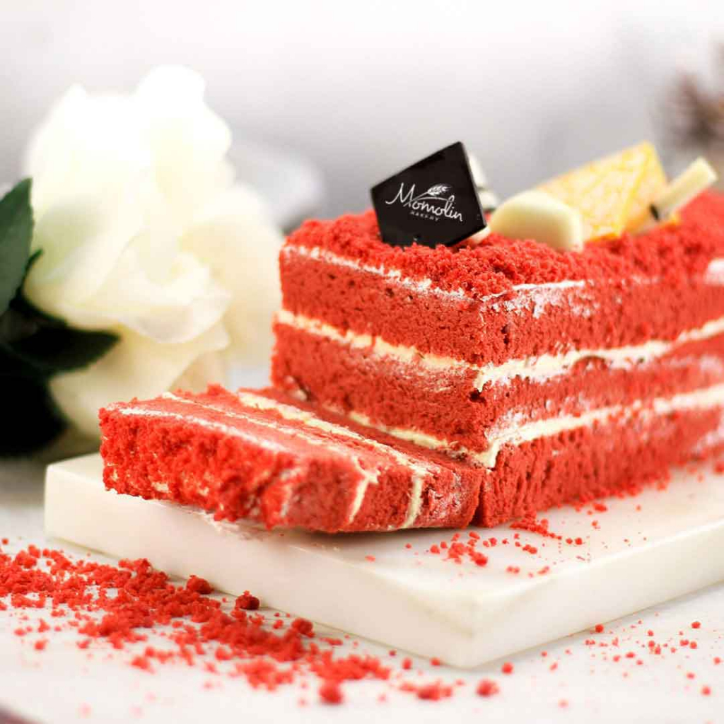 Momolin Bakery Long Cake Red Velvet - Bolu Gulung Roll Cake Red Velvet - Sponge Cake Red Velvet - Kue
