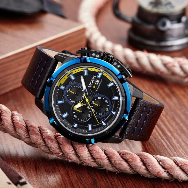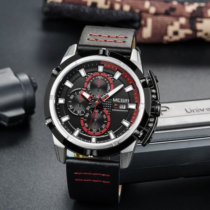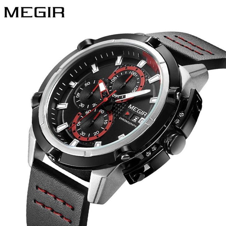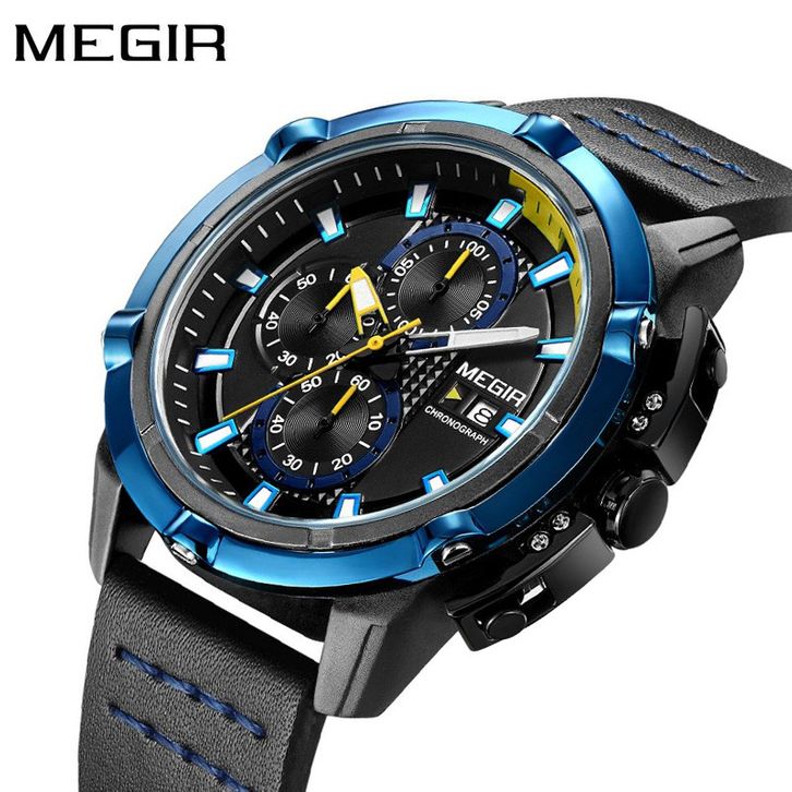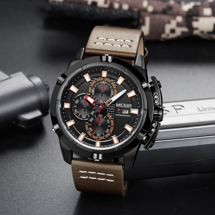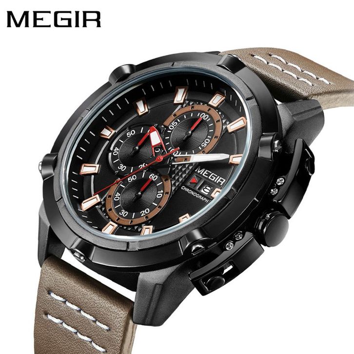 PROMO MEGIR 2062 Jam Tangan Pria Analog Chronograph Tanggal Aktif Tali Kulit WATCHKITE WKOS