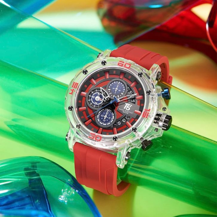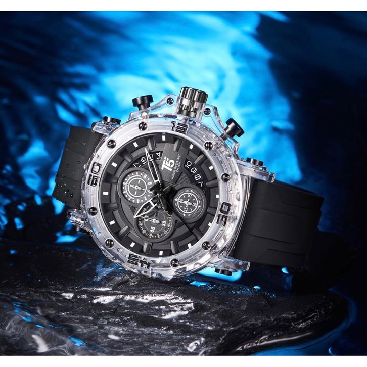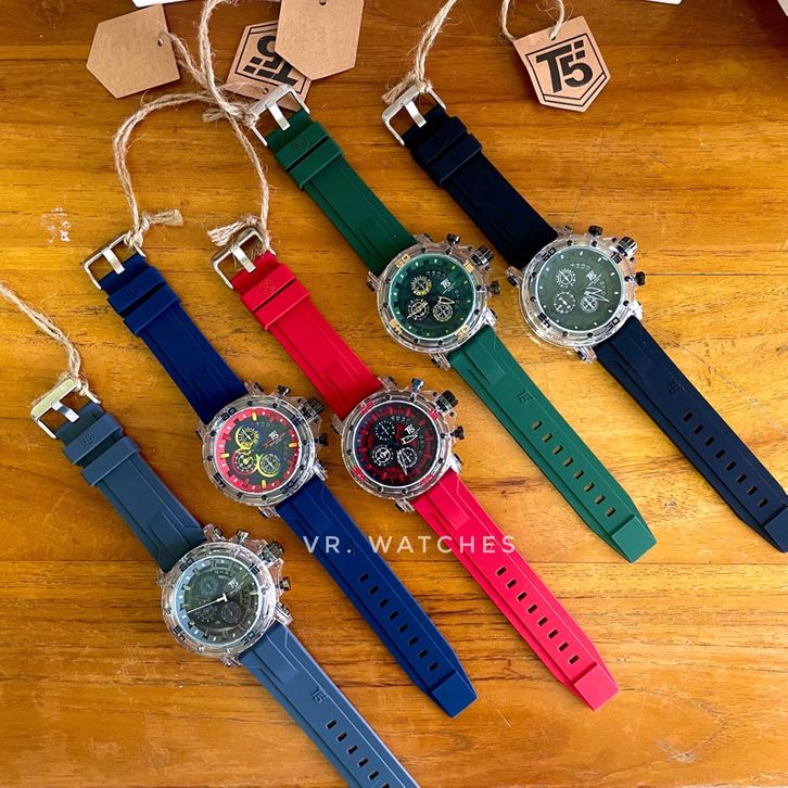 PROMO NEW Jam Tangan Pria T5 H 4004G Original Acryclic Case Transparan Chronograph Water Resistant Include Box Exclusi