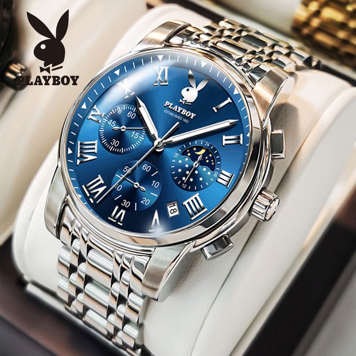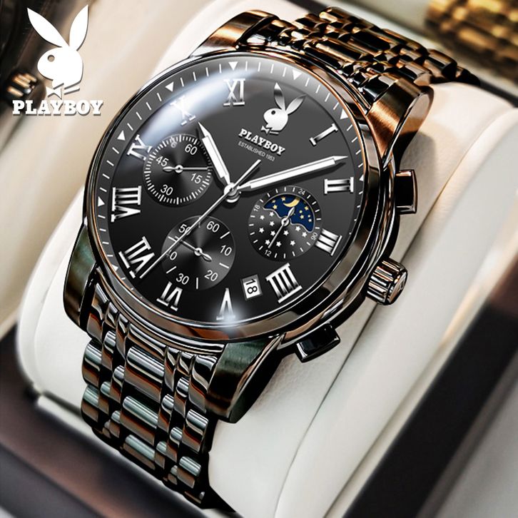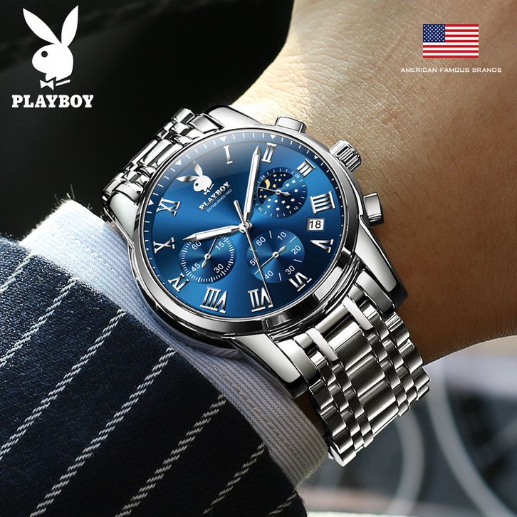 WY - PLAYBOY Jam Tangan Pria Anti Air Original Quartz Watchbrands Analog Multifungsi Luminous Kalender 3026