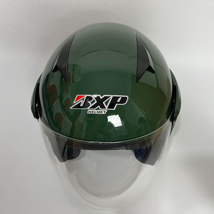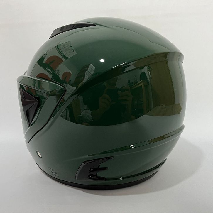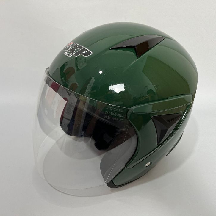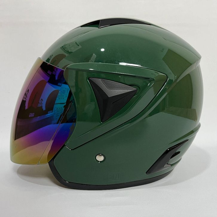 HELM JP13 HIJAU ARMY GLOSSY - KACA IRIDIUM SILVER PELANGI - HELM DEWASA - HELM SNI - HELMET - HELEM SINGLE VISOR POLOS