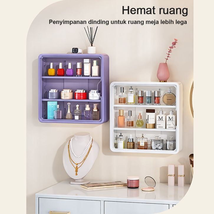 RAK KAMAR MANDI LEMARI PENYIMPANAN KOSMETIK TRANSPARAN DINDING PLASTIK SERBAGUNA STORAGE RACK TERBARU
