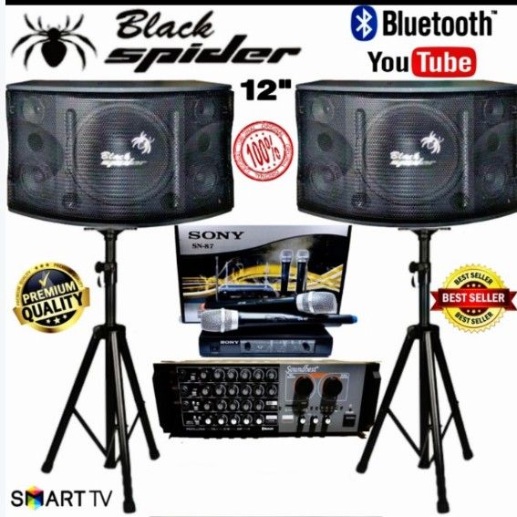 Paket Karaoke Speaker 12 Inch BlackSpider Ampli Soundbest Bluetooth Komplit Siap Pakai