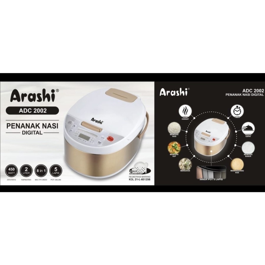 ARASHI RICE COOKER DIGITAL / MAGIC COM DIGITAL ADC 2003 (2 LITER) GARANSI RESMI