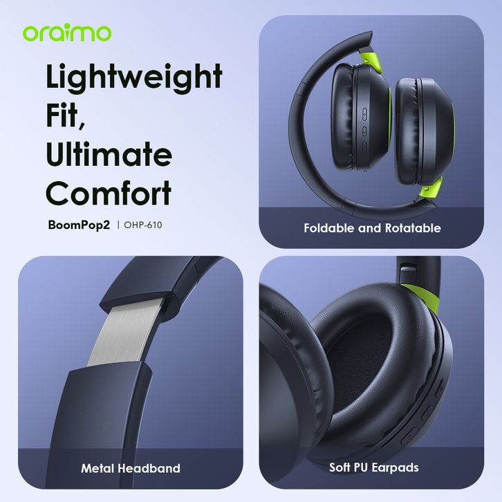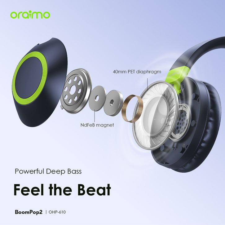 Oraimo BoomPop 2S Wireless Headphone Gesture Control Bluetooth v5.3 40H Playtime ENC HavyBass Fast Charging OHP-610S