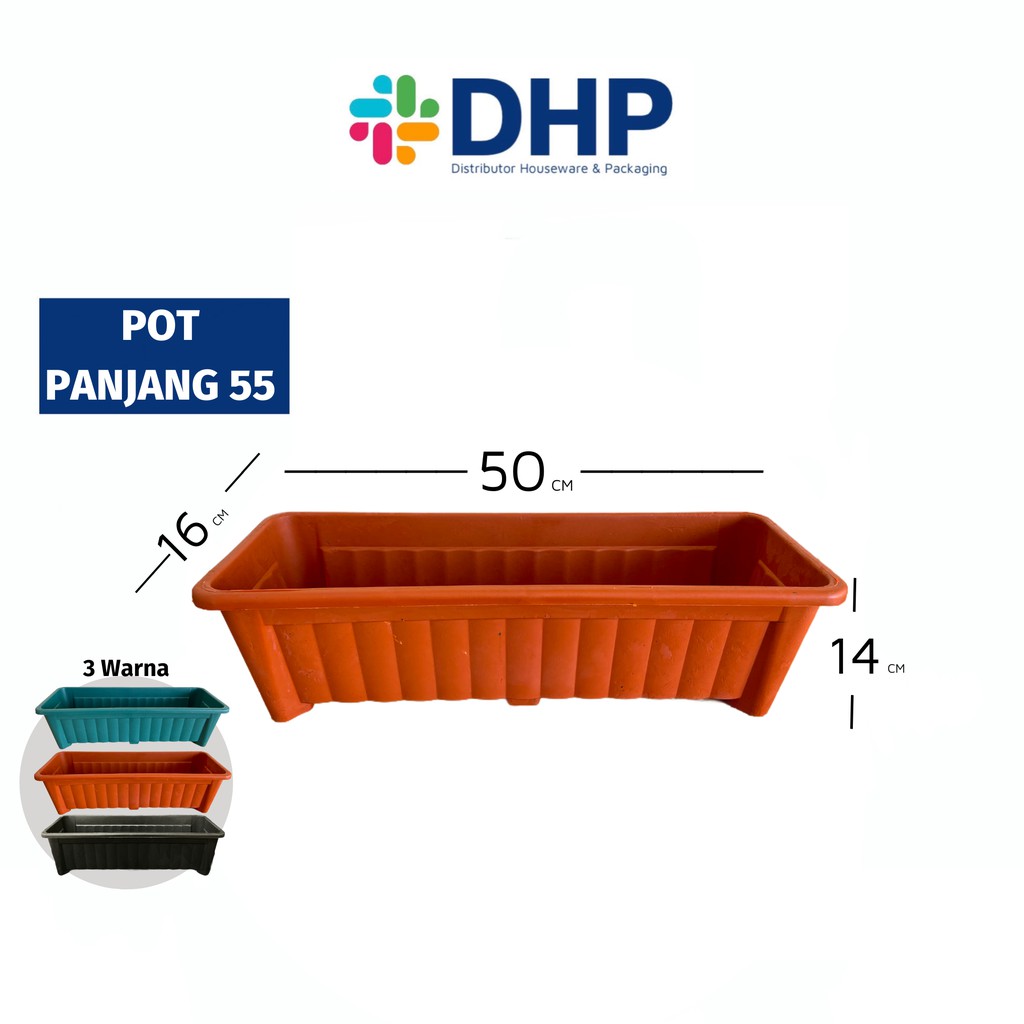 POT PANJANG 50CM PLASTIK BUNGA TANAMAN HIAS PERSEGI HITAM WARNA 55