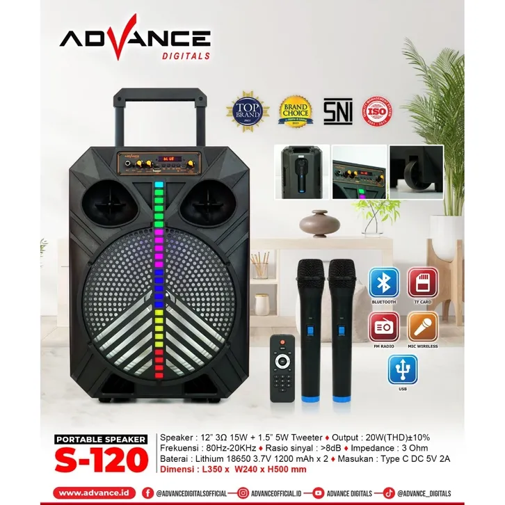 SPEAKER BLUETOOTH ADVANCE S120 12INCH BONUS 2 MIC SPIKER BLUTUT KAROKE SPEAKER BLUETOOTH SALON AKTIF BLUETOOTH FULL BASS