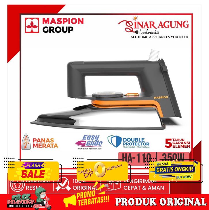 BARU+ [] MASPION SETRIKA HA110 / HA-110 (ANTI LENGKET / 350 WATT) GARANSI RESMI