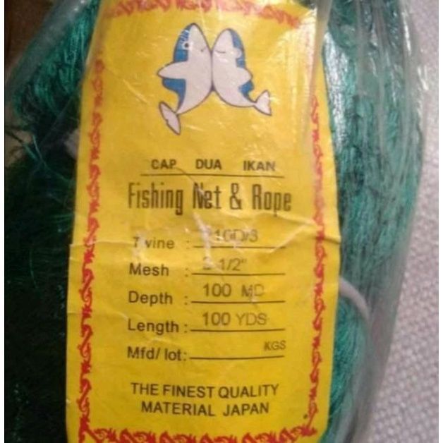 Jaring / Pukat Nilon Hijau D3 21/2 inci 100x100 Cap 2 Dua Ikan BAGUS MURAH BERKUALITAS