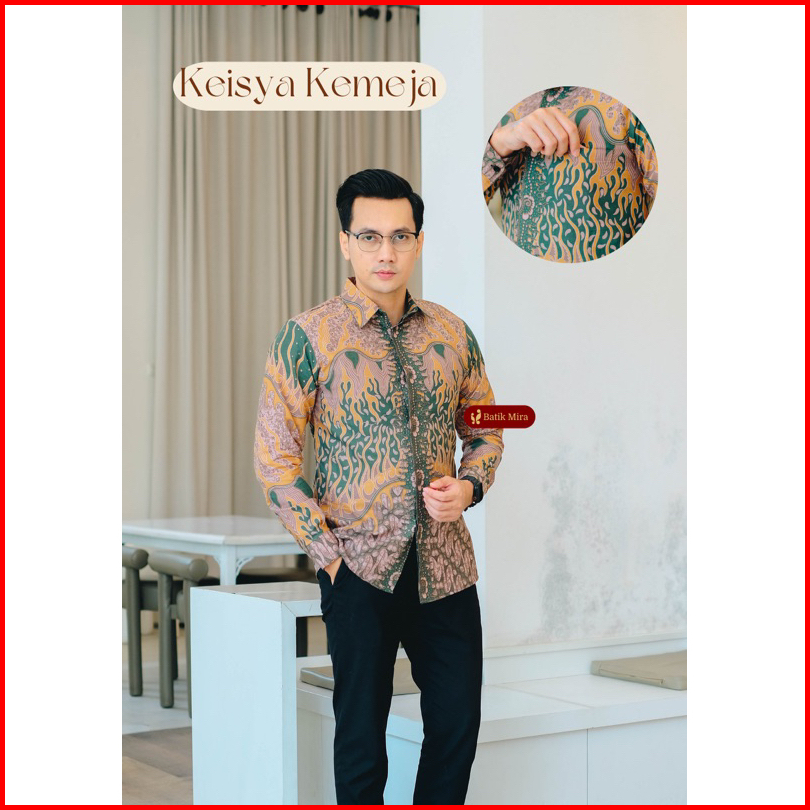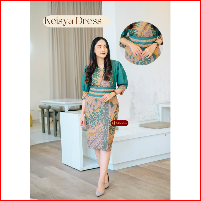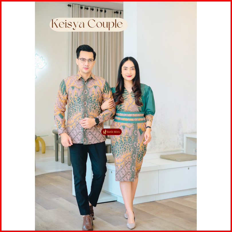 Couple Batik Premium Keisya Batik Mira Dress Full Trikot Dan Kemeja Full Furing