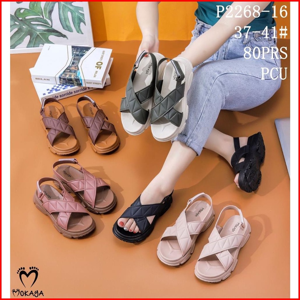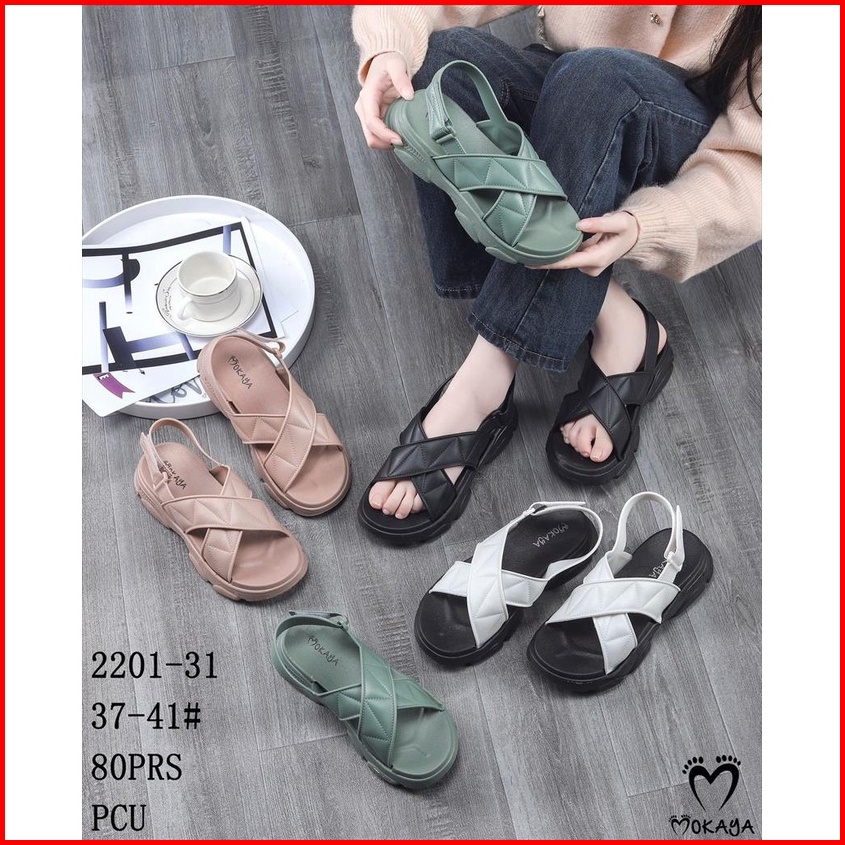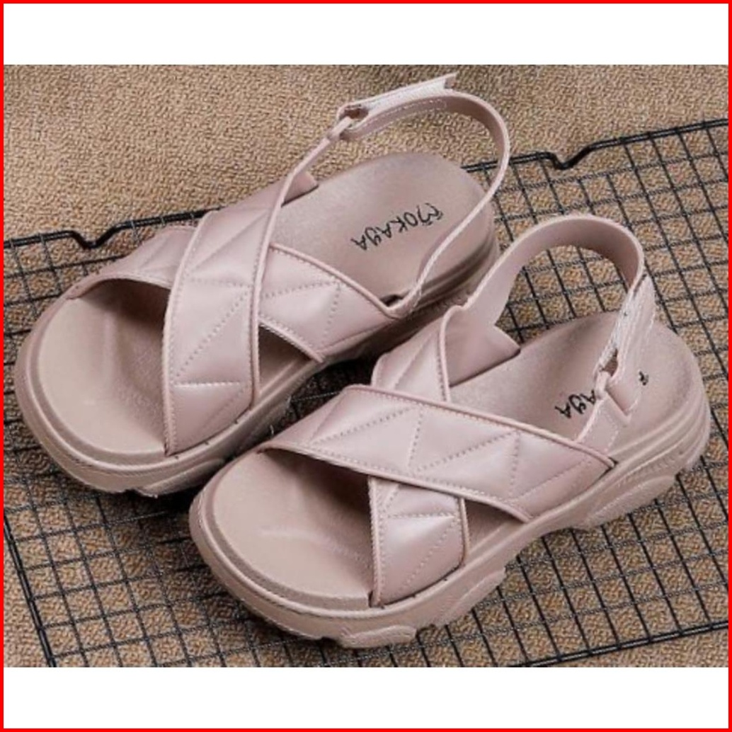 Sandal Let Slop Jelly Karet Wanita Korea Ban Silang Sol Tebal Empuk Casual Elegant Import Mokaya Size 37-41 2201-31 P226