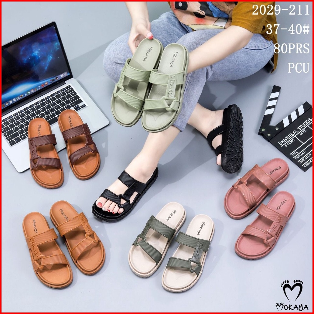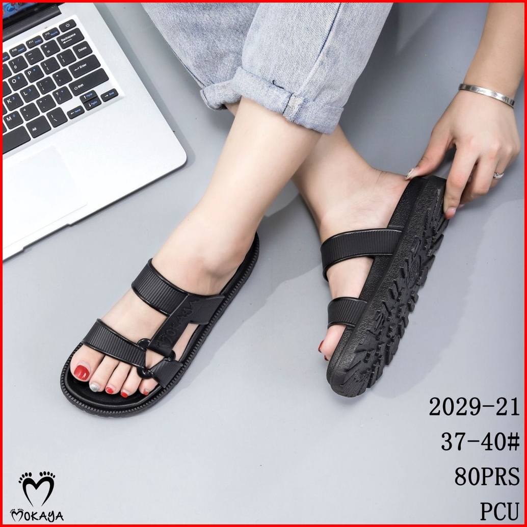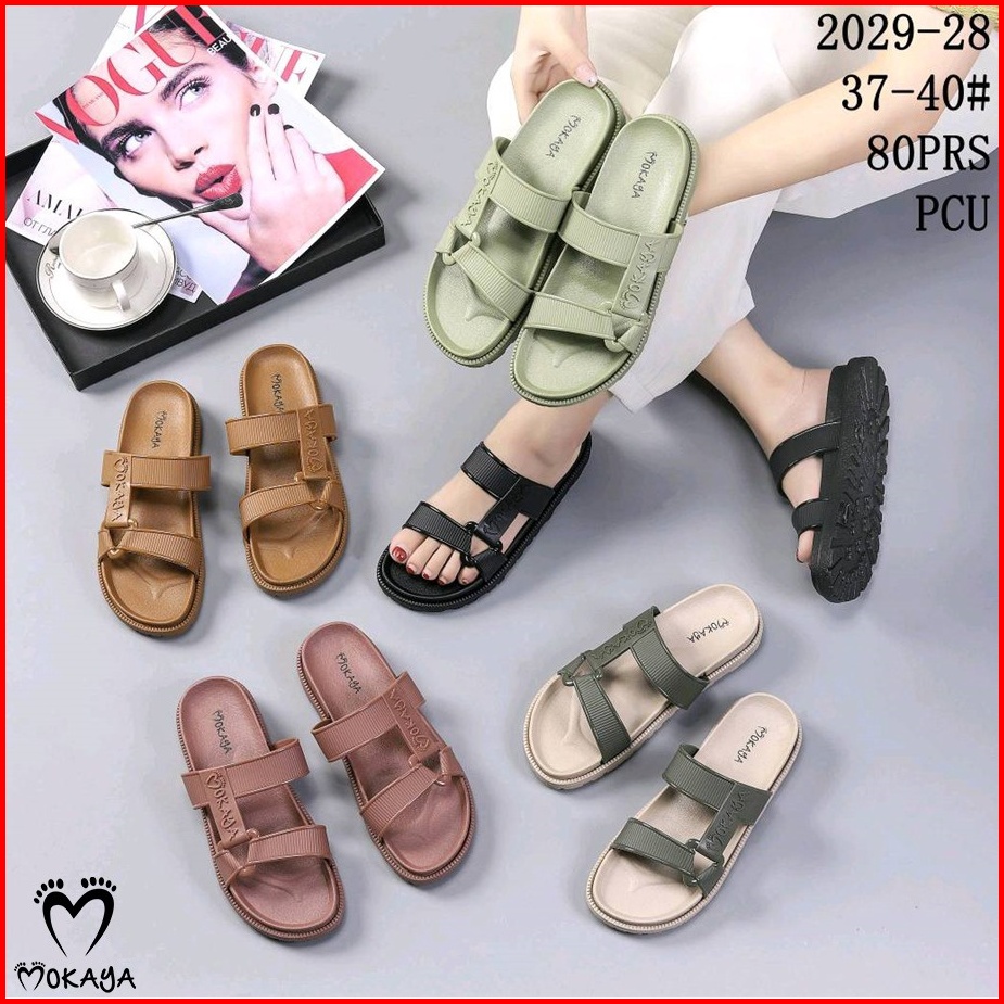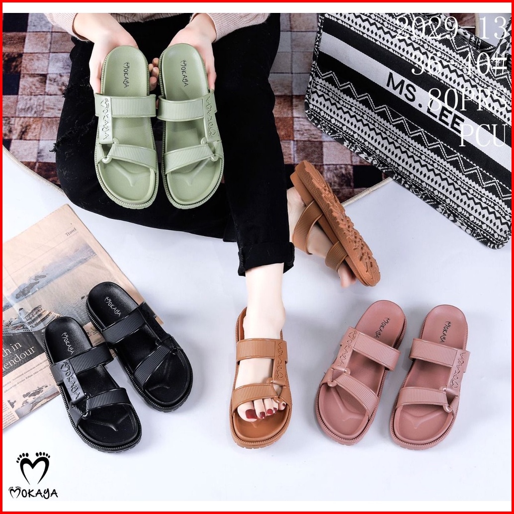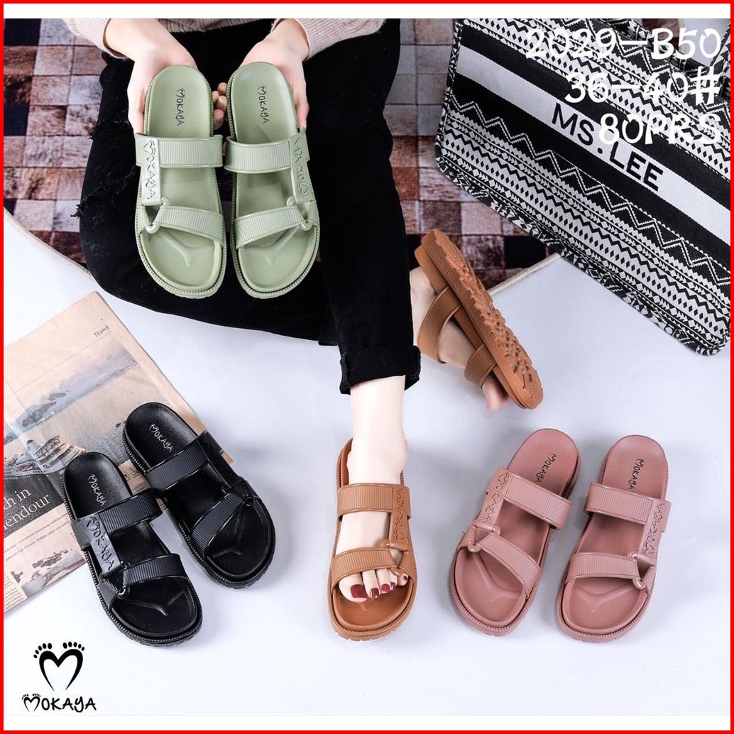Sandal Slop Jelly Semi Gunung Sama Warna Ban Strip Mokaya Super Keren Cantik Elegant Casual Import Mokaya Size 36-40 202