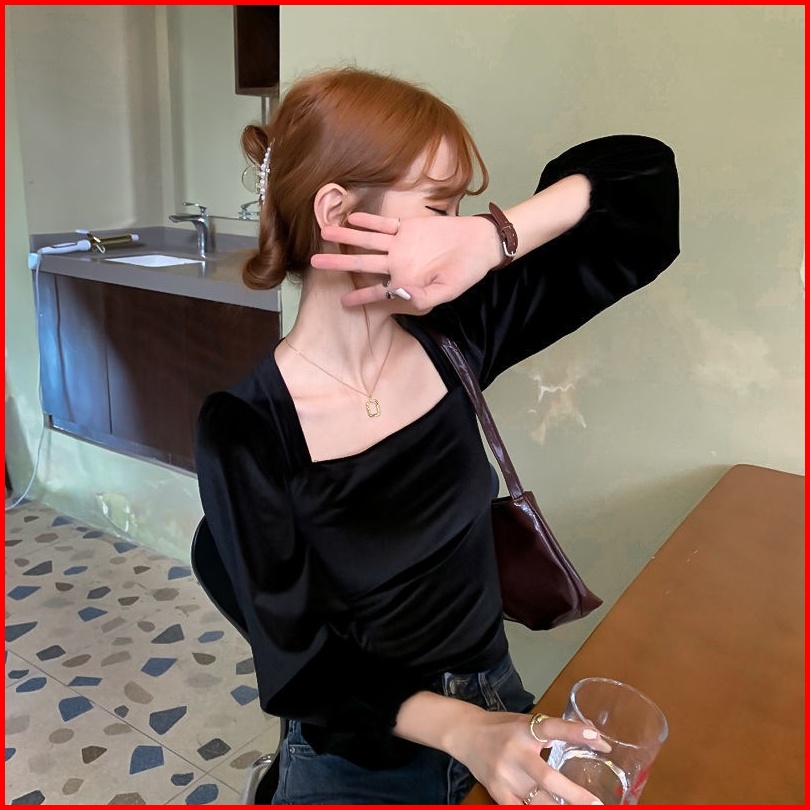 Rsb Bj339 Baju Atasan Wanita Blouse Bluse Top Sabrina Crop Top Lengan Panjang Elegan Fashion Korea