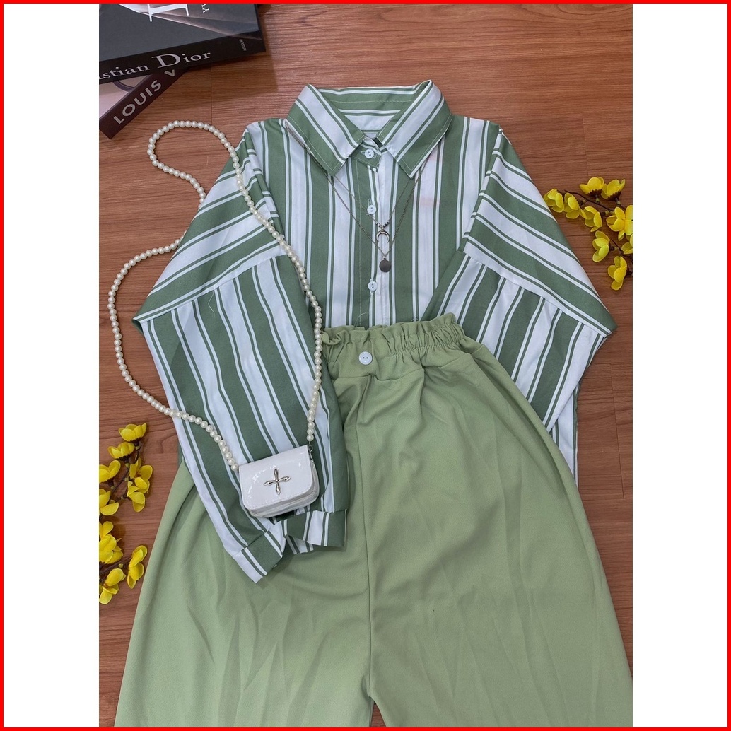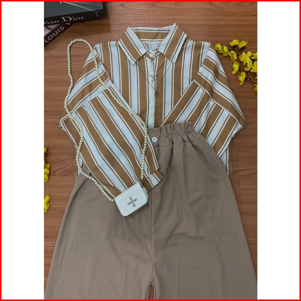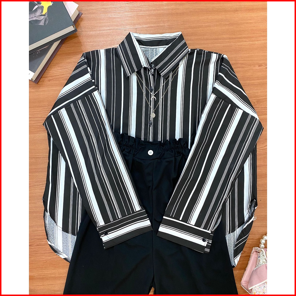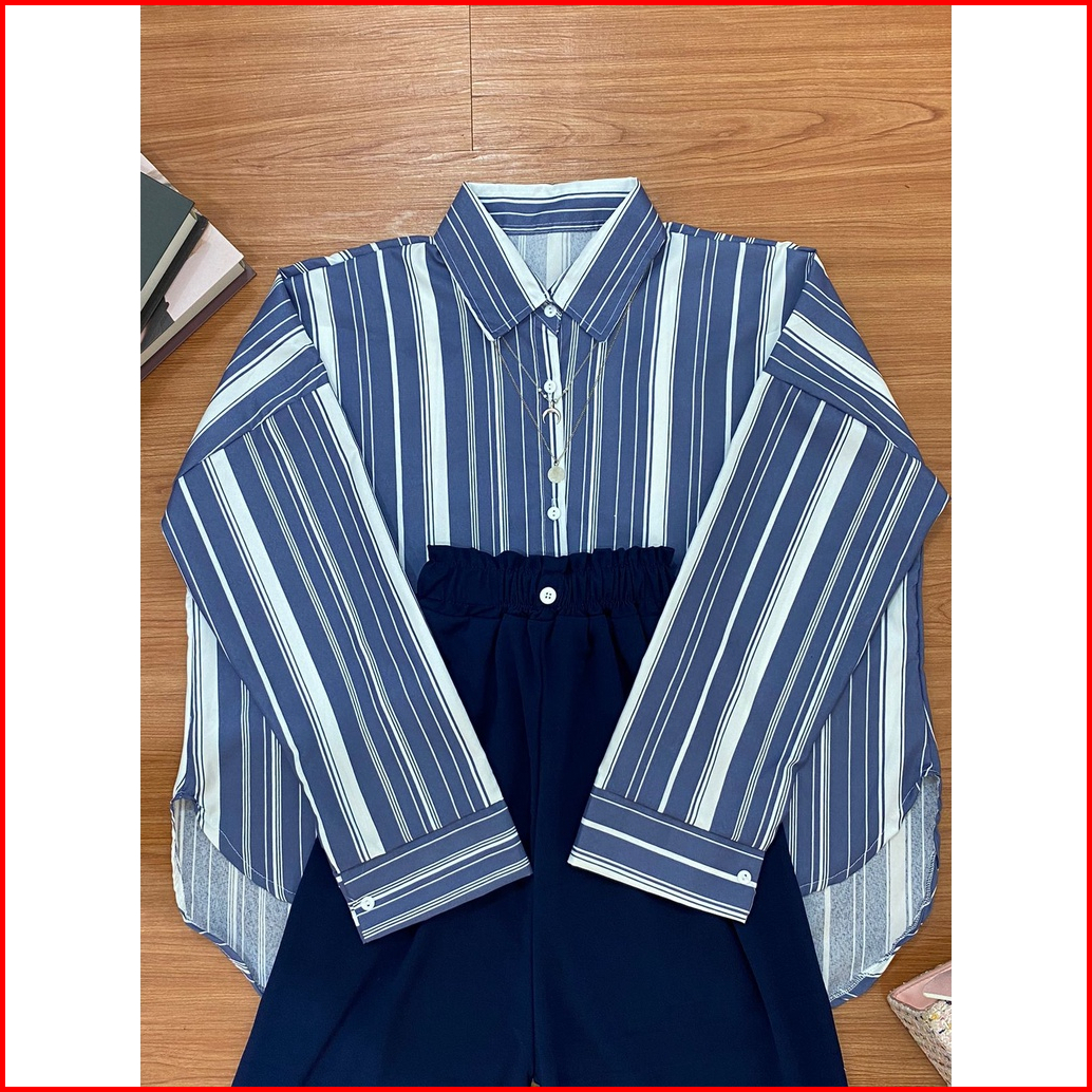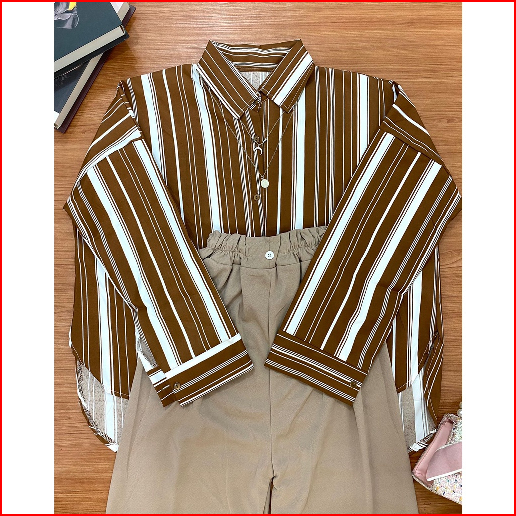 One Set Kemeja Oversize Set Aprilia Candy Sierra Stripe Wanita