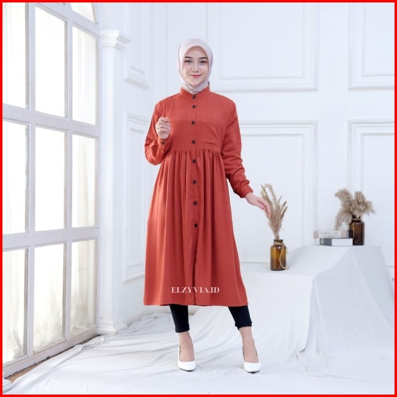 Ashila Tunik Premium - Atasan Wanita Uniqlo Original Full Kancing Tunik Kekinian Terbaru