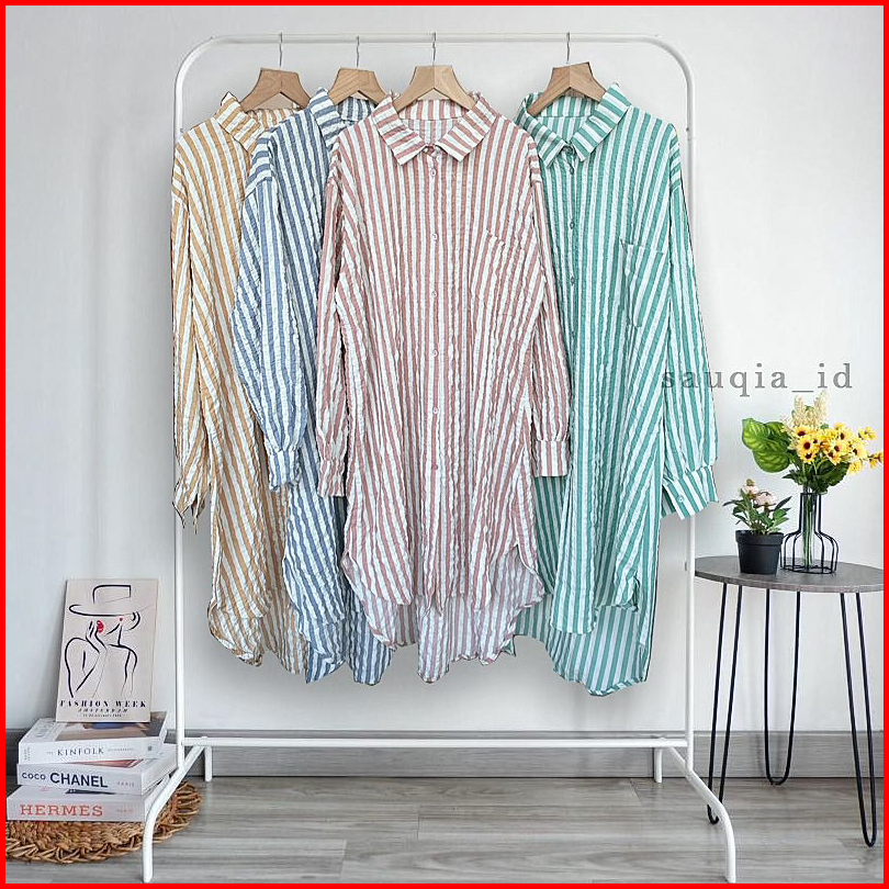 Fuka Tunik Crinkle Tunik Muslim Salur Atasan Motif Terbaru