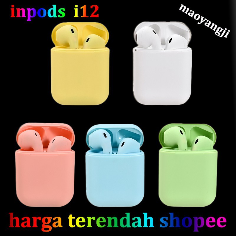 HEADSET BLUETOOTH I12 EARPHONE BLUETOOTH 5.0 WIRELESS ANDROID / IOS MACARON PRO4